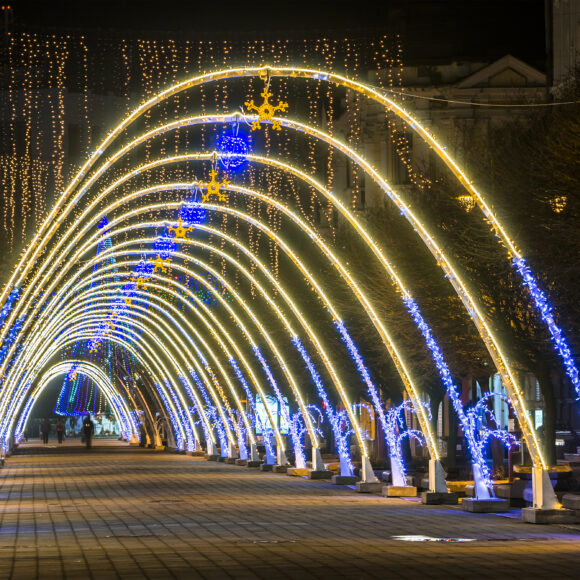 The ability of a musical jumping jet fountain to produce perfectly cut, laminar (smooth, glass-like) streams of water that “jump” from one place to another, frequently in arcs, and even seem to defy gravity by vanishing mid-air, makes it a very dynamic and engaging water feature. These fountains produce captivating and entertaining displays when paired with lighting, music, and advanced controls.