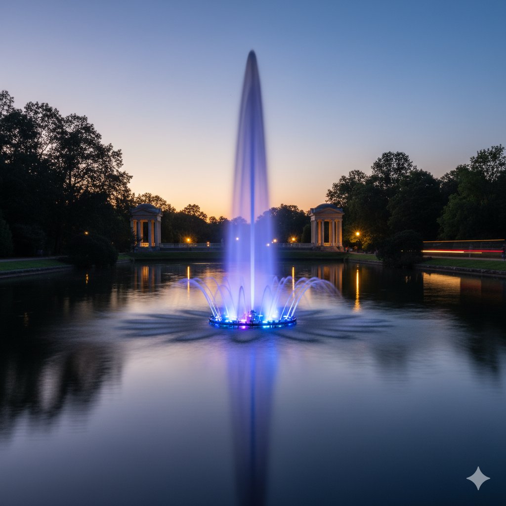 1 Dominant High Jet: Its capacity to generate a single, incredibly strong, and tall center water column is its defining feature. This has a powerful visual impact and is visible from a great distance. Because it is a self-contained unit that floats on the water, it may be used at a variety of water depths and does not require substantial fixed structures or excavation.